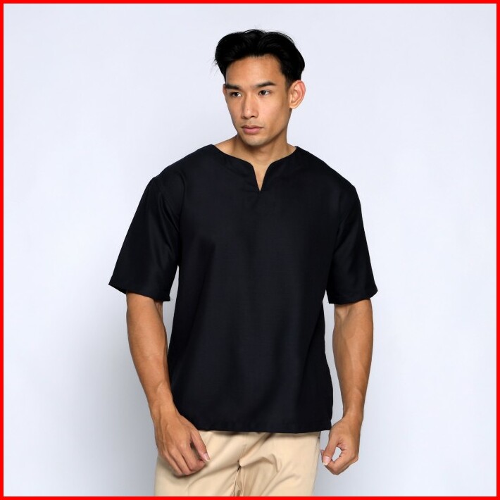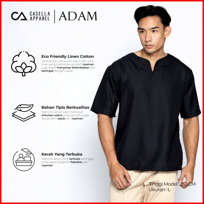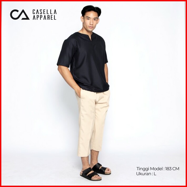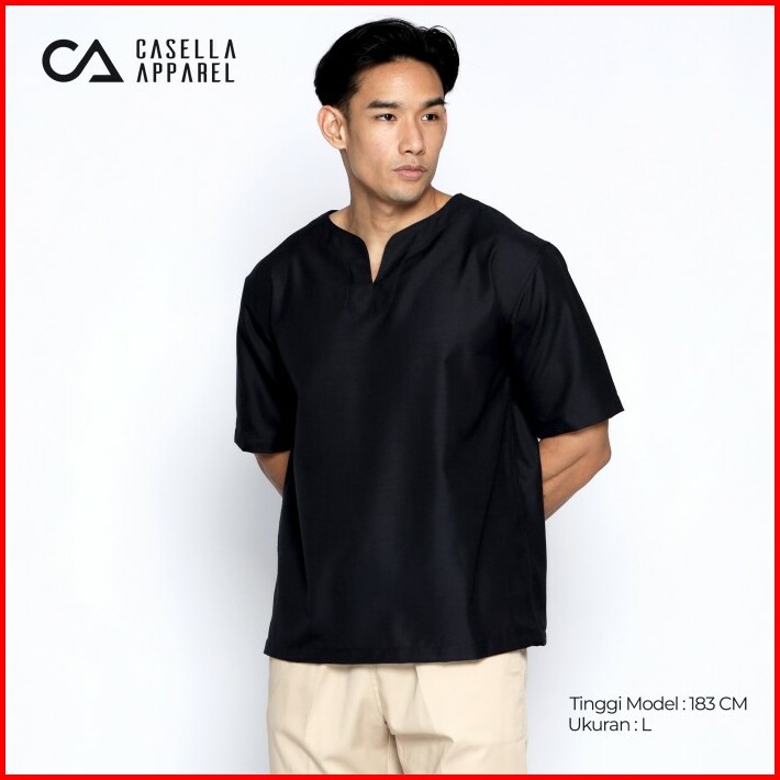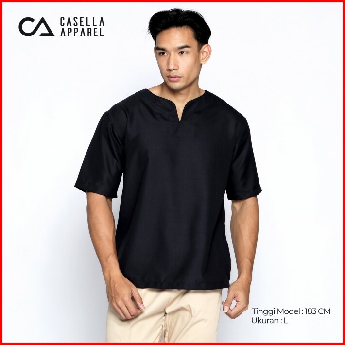 Casella Baju Kasual Basic Polos Pria Lengan Pendek Daily Wear Adam 3004 Black
