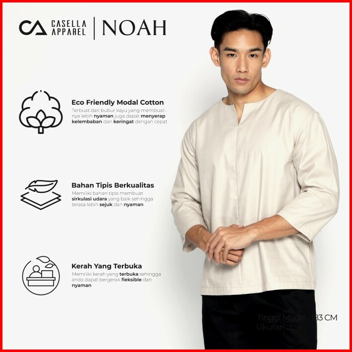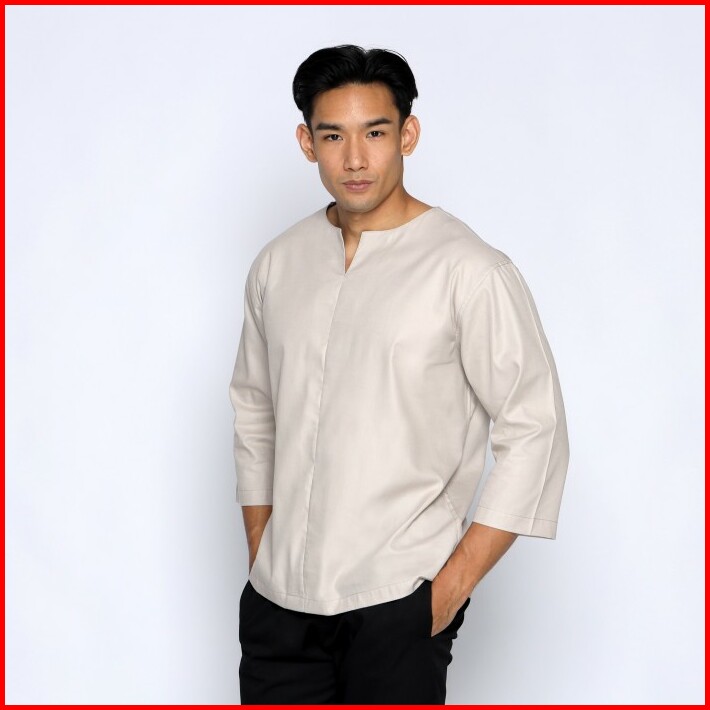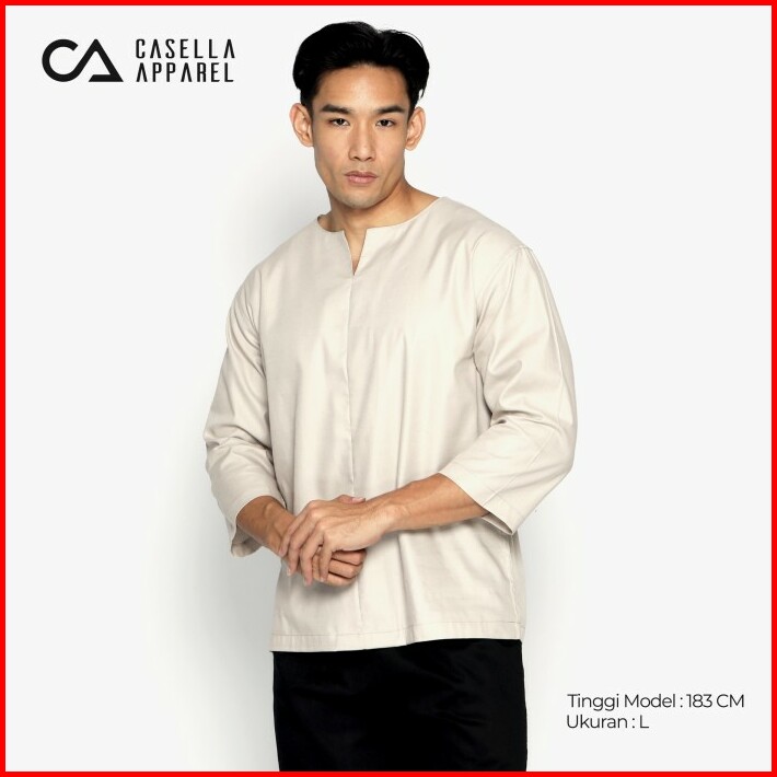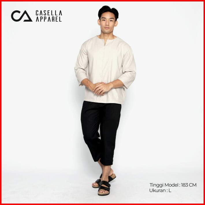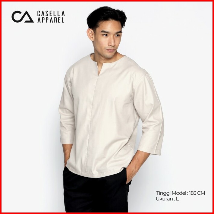 Casella Baju Kasual Basic Polos Pria Lengan 7 8 Daily Wear Noah 5029 Khaki