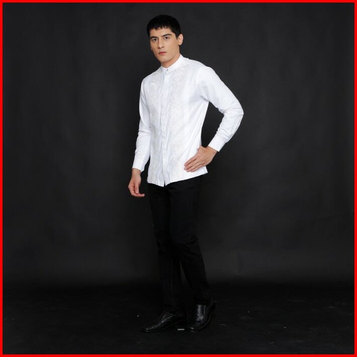 Casella Baju Koko Pria Lengan Panjang Bordir Pleats Design 9685 White