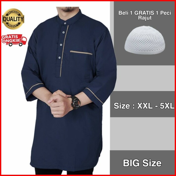 Baju Koko Kurta Muslim Pakistan Pria Qomishu Jumbo Big Size