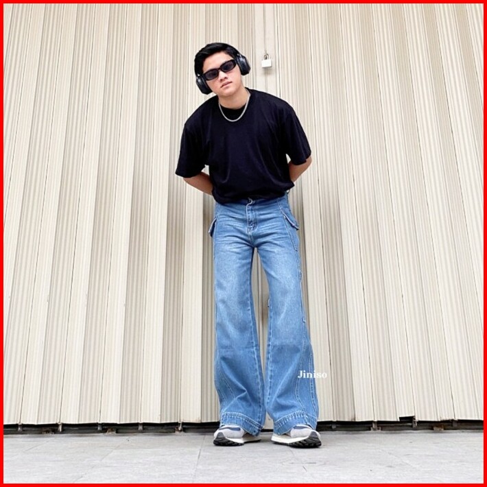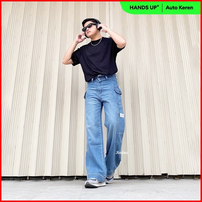 Jiniso Cargo Baggy Denim Jeans Pria 413