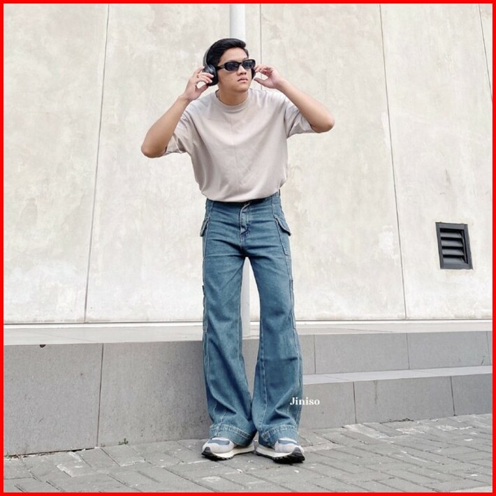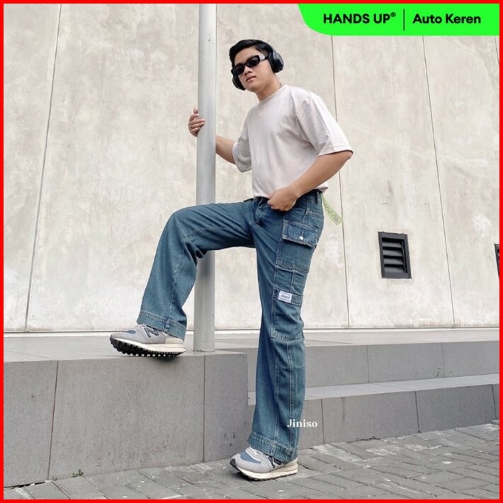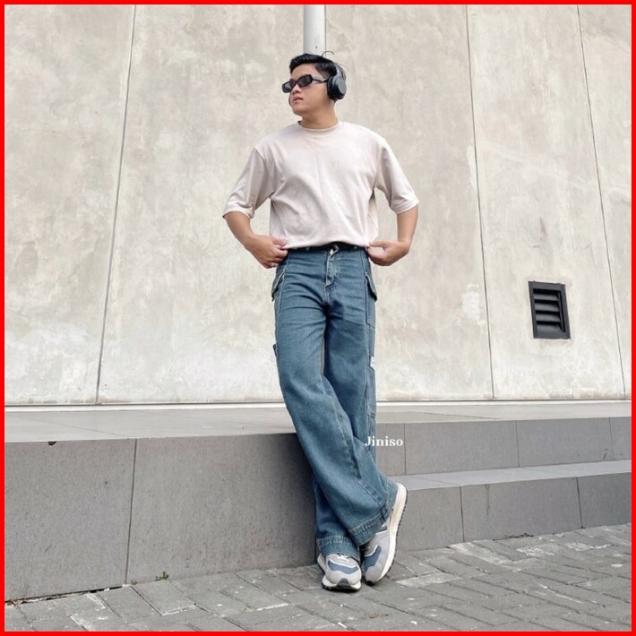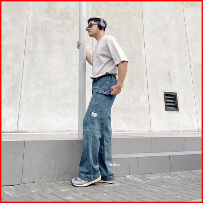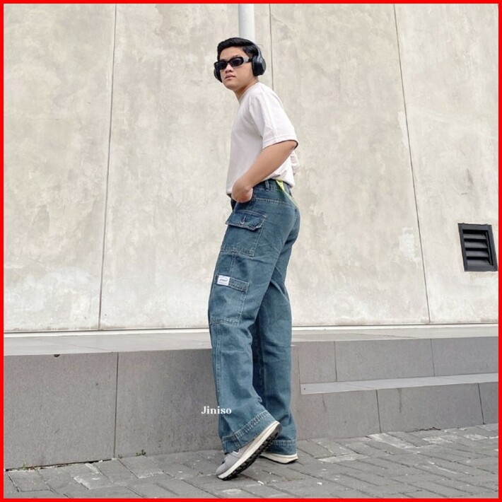 Jiniso Cargo Baggy Denim Jeans Pria 414