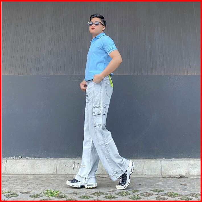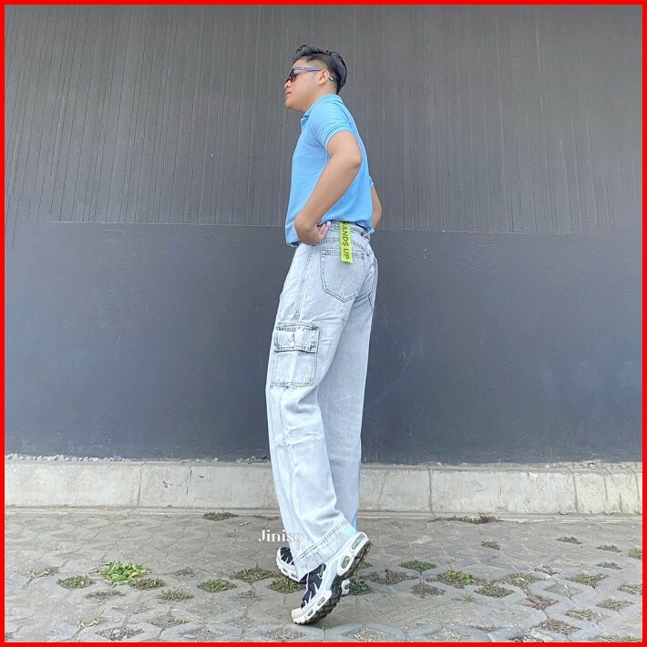 Jiniso Cargo Loose Denim Jeans Pria 399
