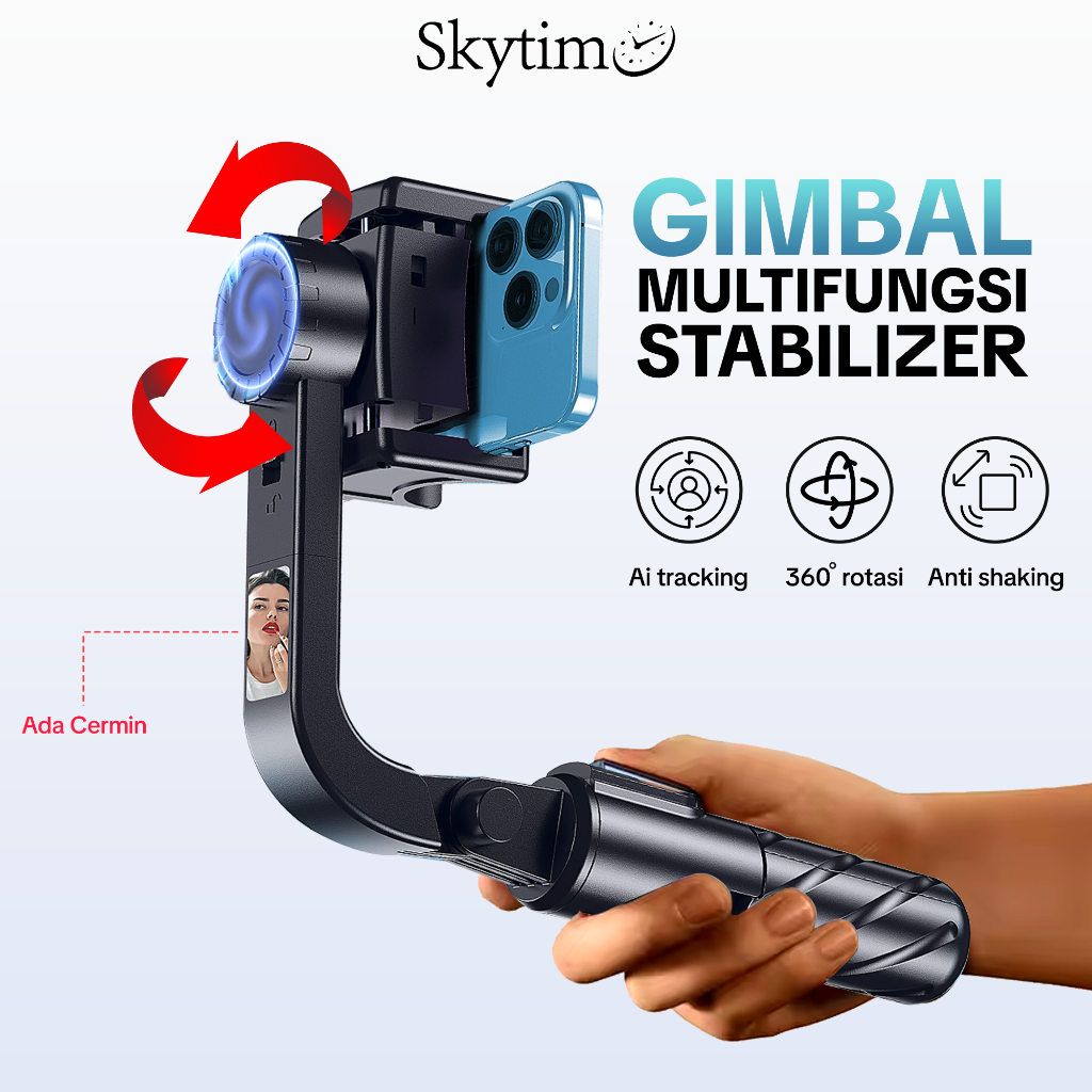 Skytime Gimbal Stabilizier Selfie Stick Tripod Multifungsi 360derajat Remote Bluetooth GS07