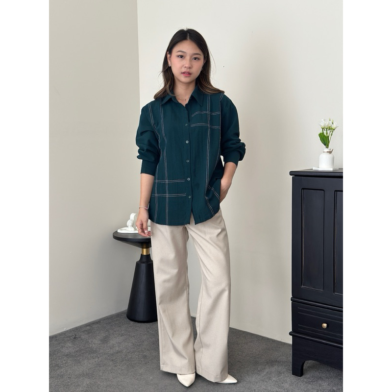 ASOKA Twila Shirt 2289 - Contrast Stitch Oversize Blouse Long Sleeve - Atasan Wanita Kemeja