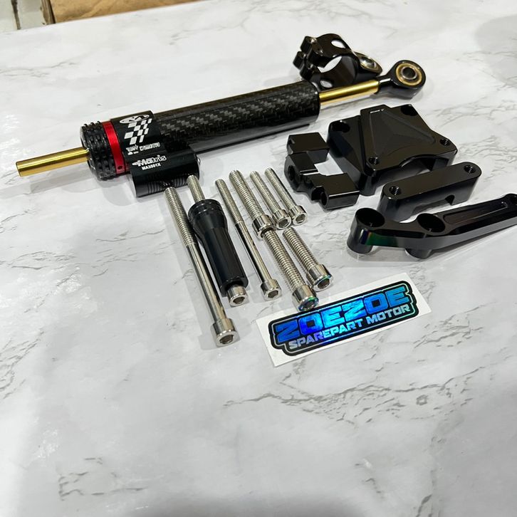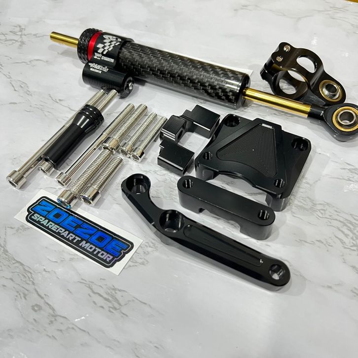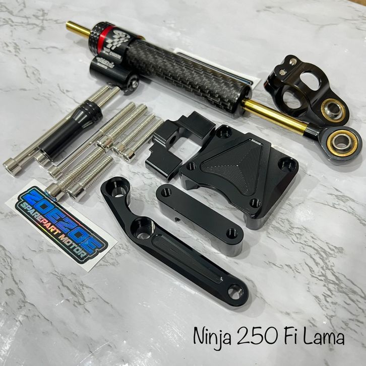 Steering Damper Matris Carbon Ninja 250 Karbu, Ninja 250 FI Old 2013-2017 Stabiliser Plus Bracket Breket Ninja 250 Karb