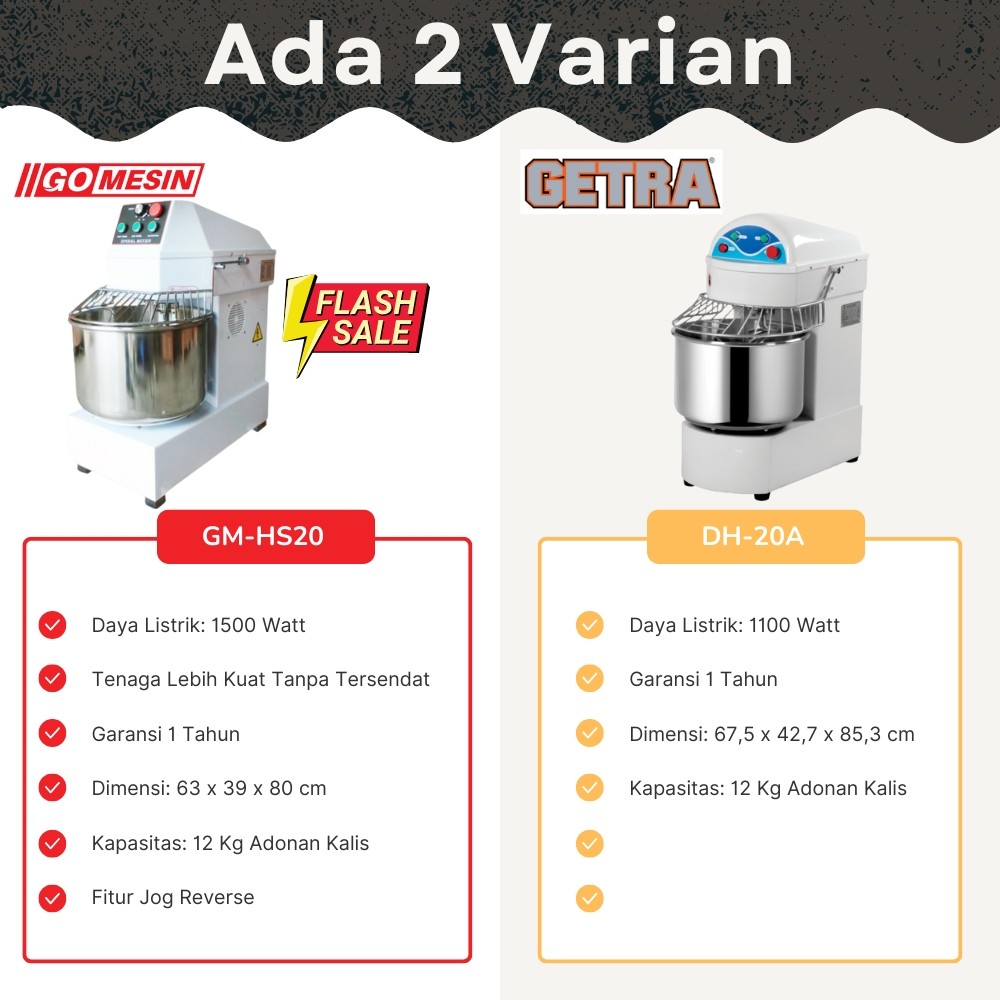 Spiral Mixer Getra 20 Liter Dh 20a Dh 20 A Mixer Spiral Adonan Roti Kue Telur Garansi Resmi