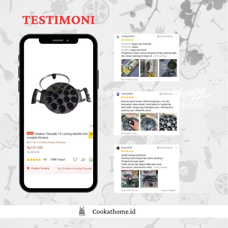 Cetakan Takoyaki 15 Lubang Marble Anti Lengket (Osaka)