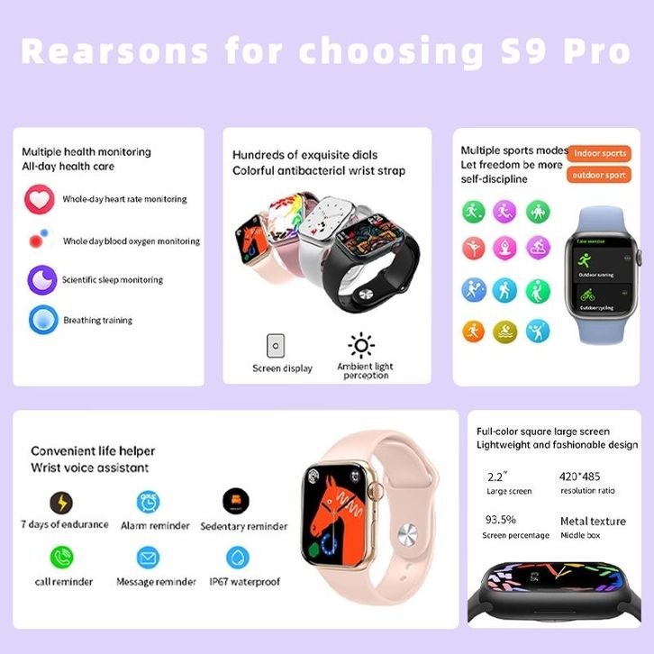 GARANSISAMSUNG SmartWatch 9 PRO MAX 2.0 "HD Full Touch Screen Bluetooth Call Waterproof Android IOS Digital Watch Jam
