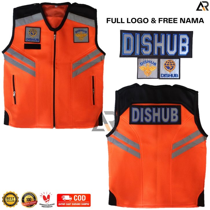 Rompi Dishub Tebal Terbaru full ORANGE | Rompi Doublemesh | Logo Lengkap Nama/Gratis nama