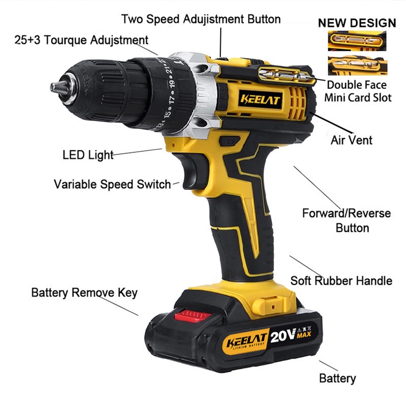 Mesin Bor 2Baterai Cordless Impact Drill 20V berkualitas gratis ongkir