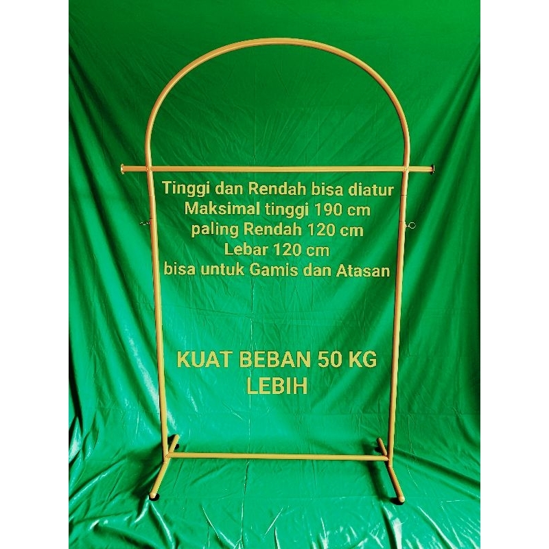 hanger Gawang besi Baju Busur Premium besi tebal / Gawang Oval Premium tinggi bisa diatur sampai Dengan 2 meter dan rendah bisa 120 cm, bisa untuk Gamis, abaya, atasan, celana dll.