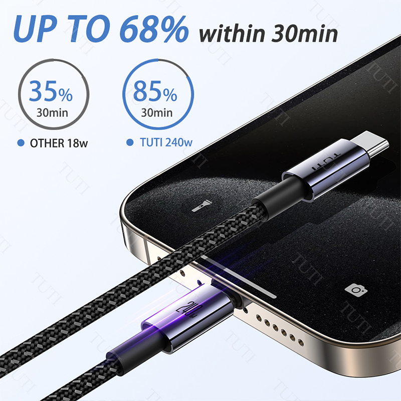 Kabel Data 5.0A 48V Fast Charging Type C To Type C Usb To Lightning Pd 240W 1.8M Tuti