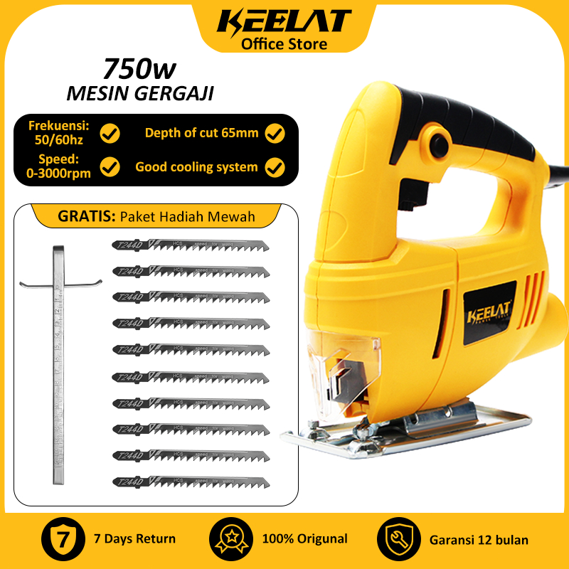 KEELAT 750W Gergaji listrik Mesin Gergaji Jigsaw Power Tools Handheld Jig Saw With 5Pcs Saw Blade Electric Wood Reciproc