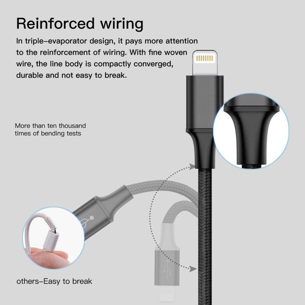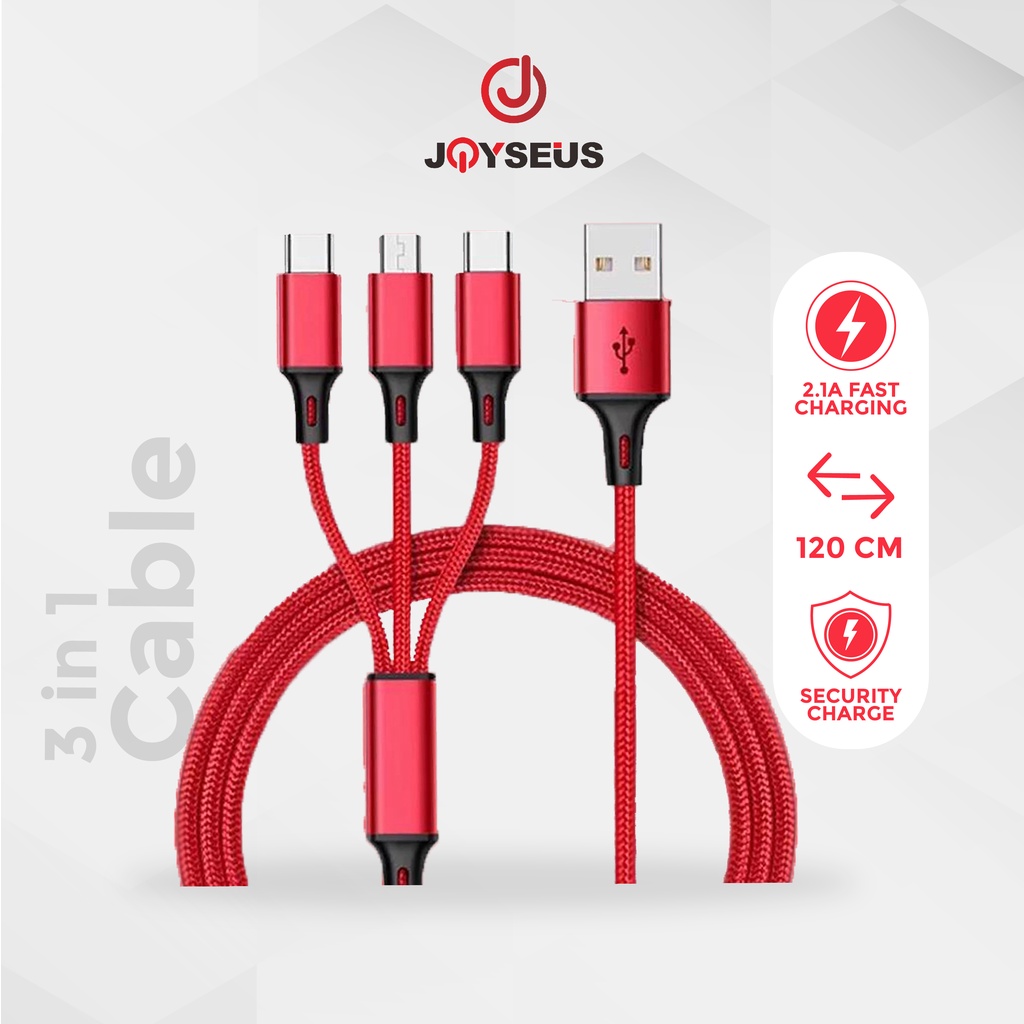 Kabel Data Cable Data 3 In 1 MIcro USB Type-C Lighting JOYSEUS 100 JM Black - KB0021