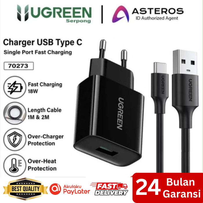 Ugreen Charger HP Samsung Mi 1 Set Usb Type C Fast Charging 10w, 15w, 18w Original - Ugreen Official Store