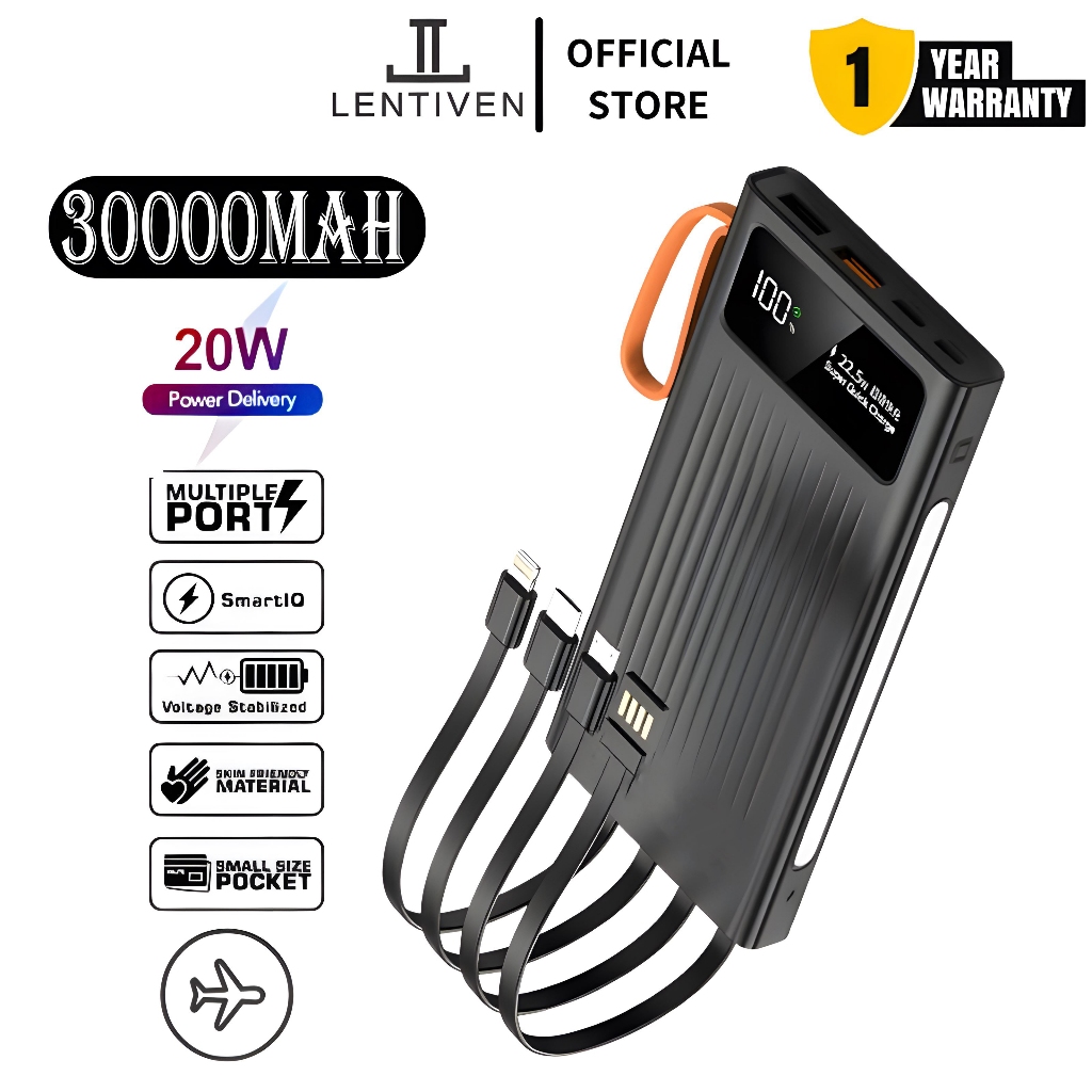 [Mall] Powerbank 30000mah Mini Fast Charging With 4 usb LED Display P57 LENTIVEN