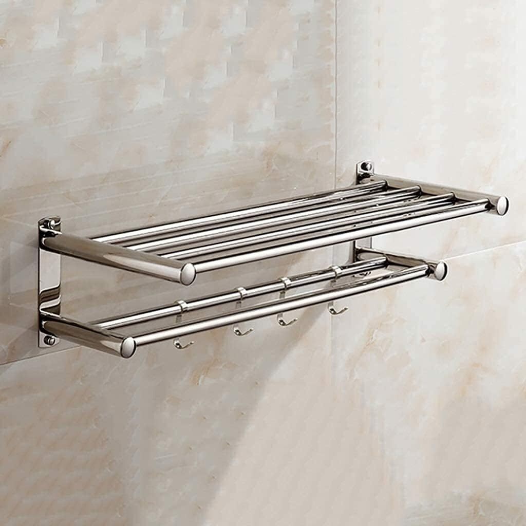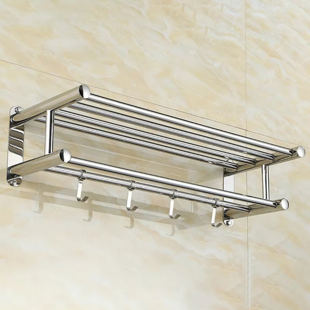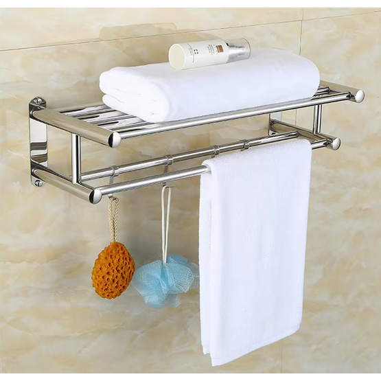 Rak Gantungan Handuk Kamar Mandi Tempel Dinding Lipat Tanpa Paku Stainless Steel Aesthetic Silver
