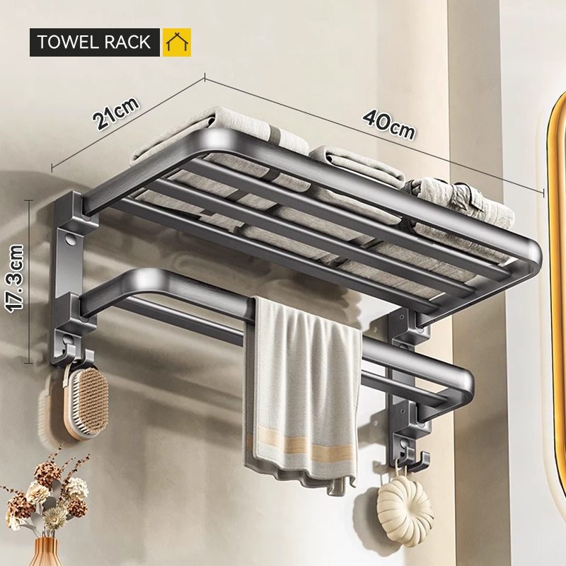 Rak Gantungan Handuk Lipat Ganda Rak Jemuran Kamar Mandi Gantungan Dinding Multifungsi Toilet Stainless Steel 40cm/50cm/