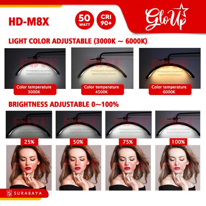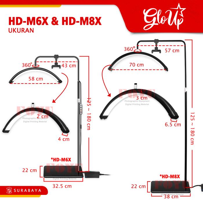 Gloup Hd-M6X Hd-M8X Led Half Moon Light Beauty Lamp Lampu Studio Spa Salon Kecantikan Rias Makeup Make Up Mua - Hd-M6X B