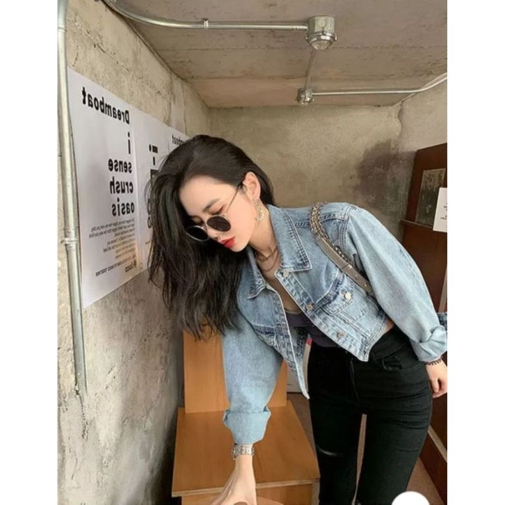Jaket Jeans Denim Crop Wanita Lengan Panjang Model Terbaru