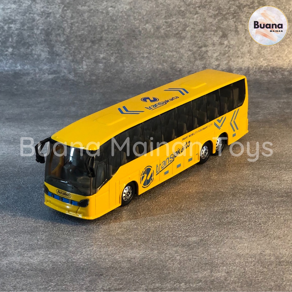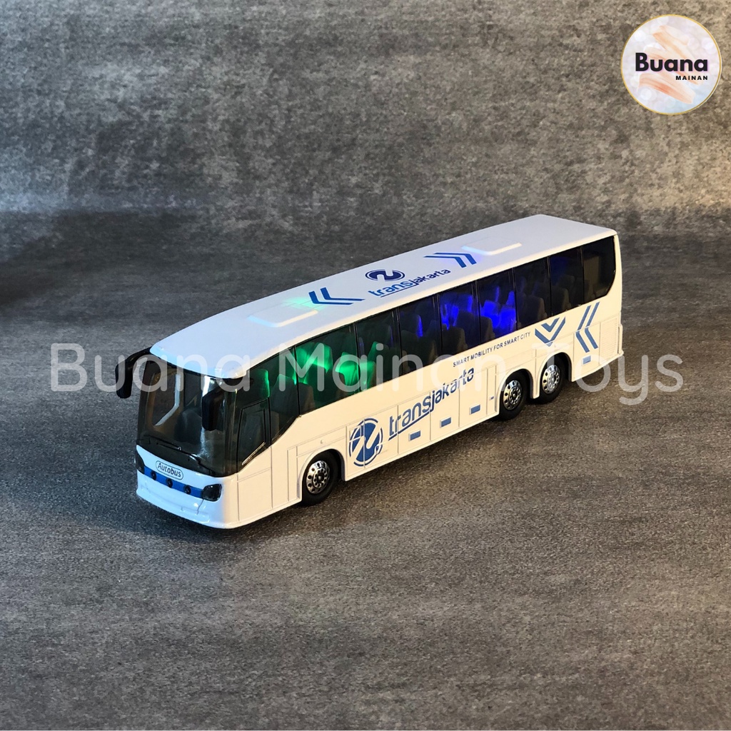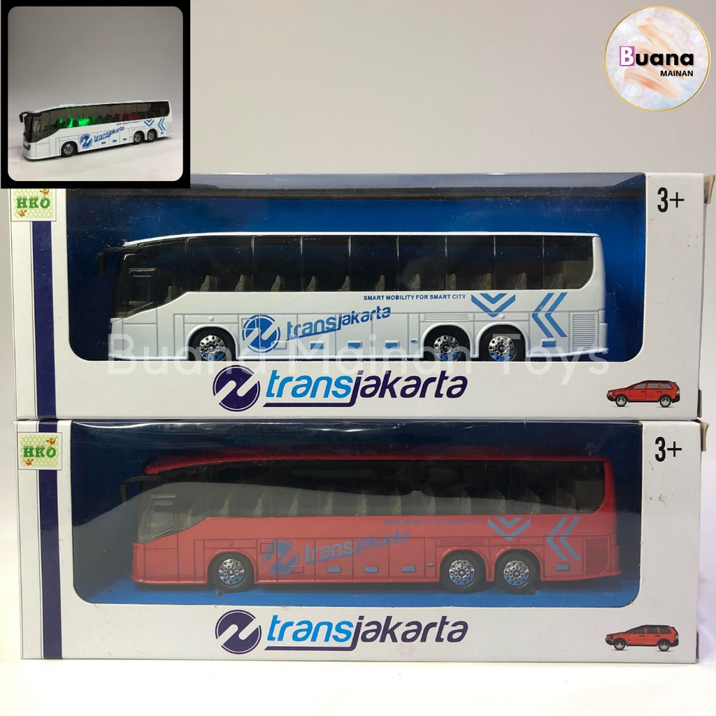 DIECAST BUS TRANS JAKARTA MAINAN ANAK MOBIL MOBILAN DIE CAST PULL BACK DENGAN LAMPU SUARA