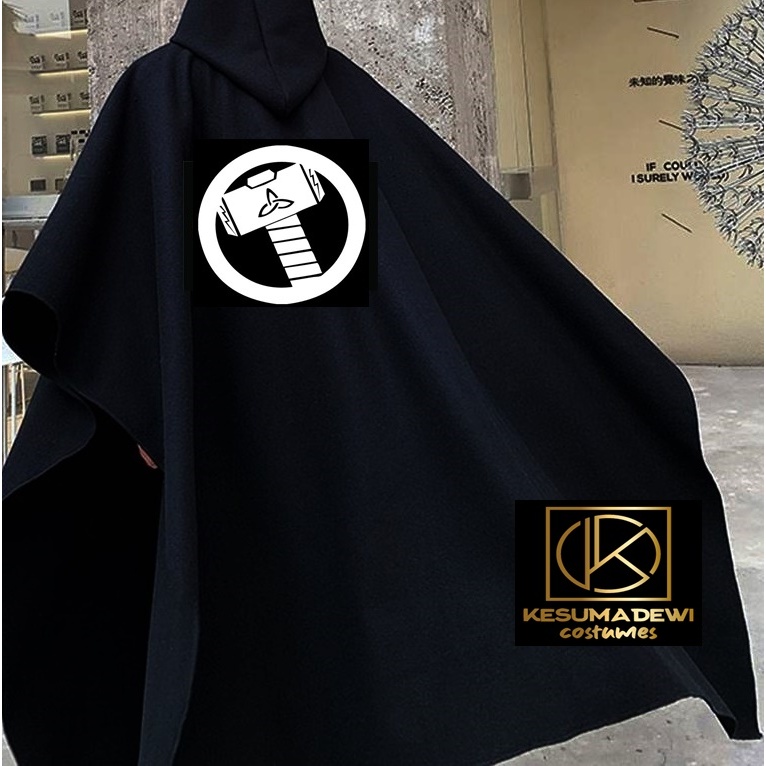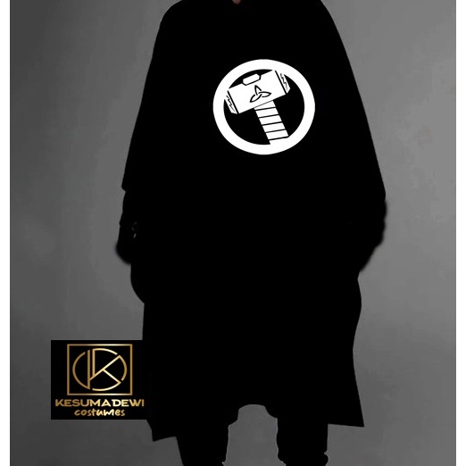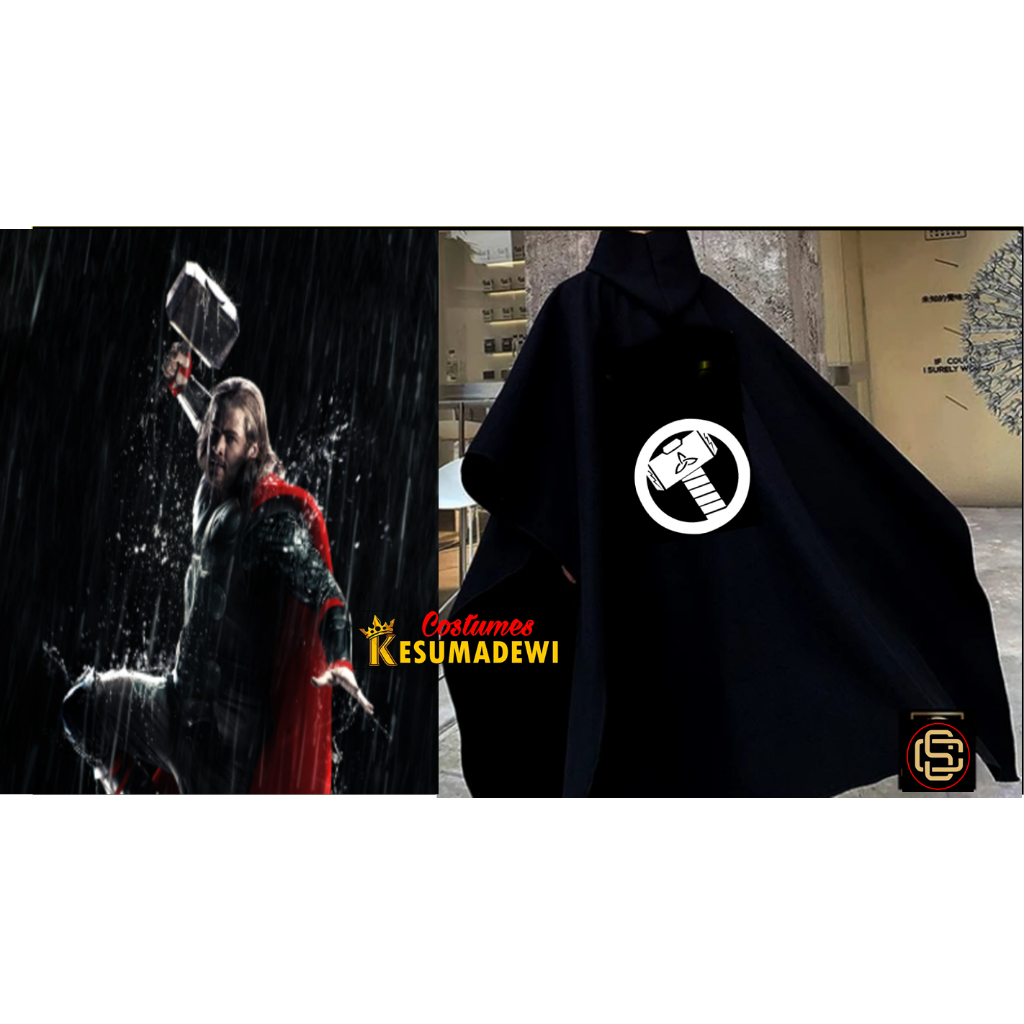 THOR | Jubah Panjang Capeshirt Hoodie Superhero | Black-Hooded-Cape Cosplay Party Pesta Halloween Kostum Premium Hitam