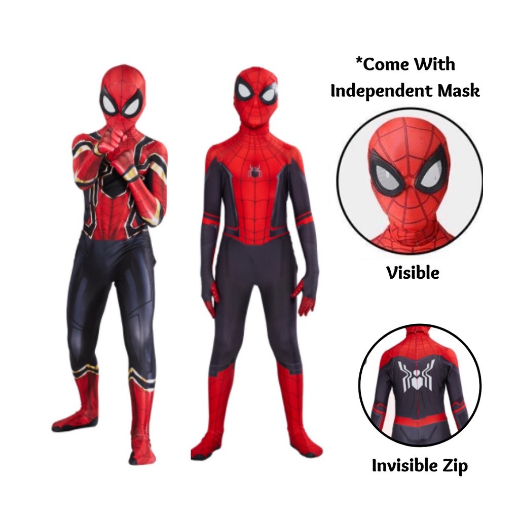 Cosplay Dewasa Laba -laba Pria Gwen Besi Spiderman Kostum+Topeng Cosplay Superhero Jumpsuit Untuk Dewasa
