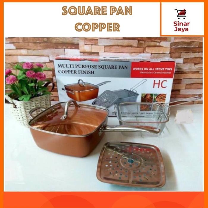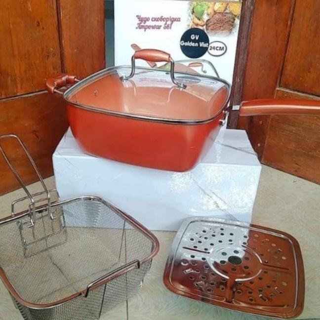 GOLDEN VIST Square Pan / Panci Serbaguna /Deep Fry Copper Finish 24 cm