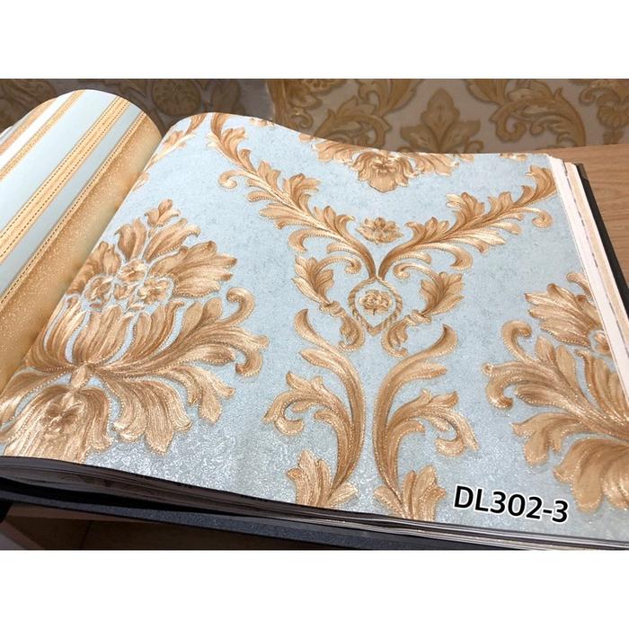 Wallpaper Dinding Klasik Biru Cream Gold Abu Mewah Emboss