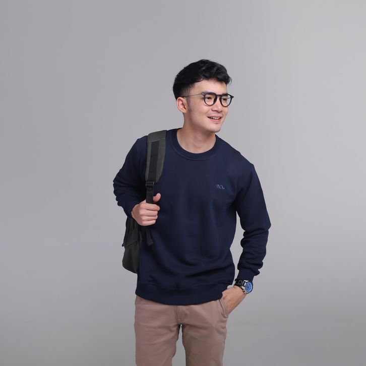TERBARU iNeat Mersey Sweatshirt Jacket Navy - Jaket Sweater Crewneck Unisex Biru Dongker icigk