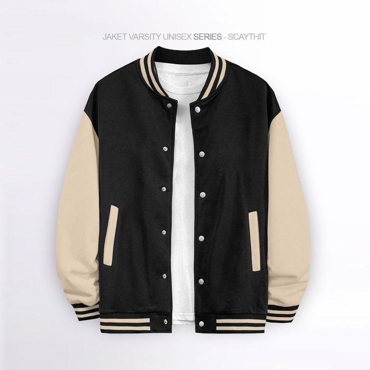 PROMO Scaythit - Jaket Varsity Polos Hitam Putih Unisex ( Pria - Wanita ) Remaja Dewasa onebb