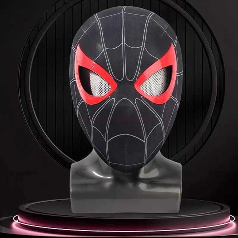 Topeng Spiderman Black Hitam Mata Kedip Fullface Mask Spider man Head Miles Morales Superhero Chin Control Cosplay