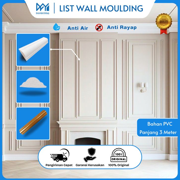 [3METER] List Plafon Wall Moulding PVC List Border Molding Anti Rayap Dan Anti Air Warna Putih