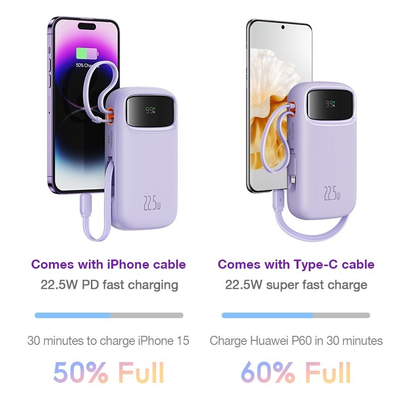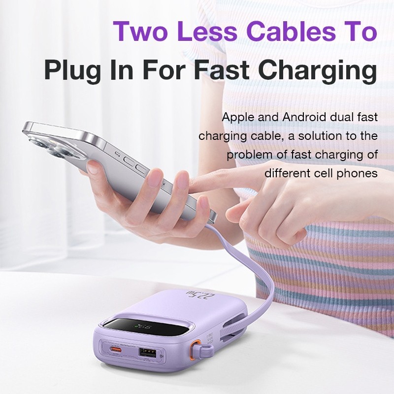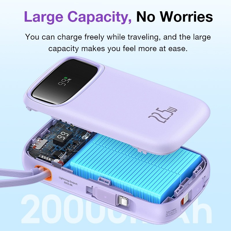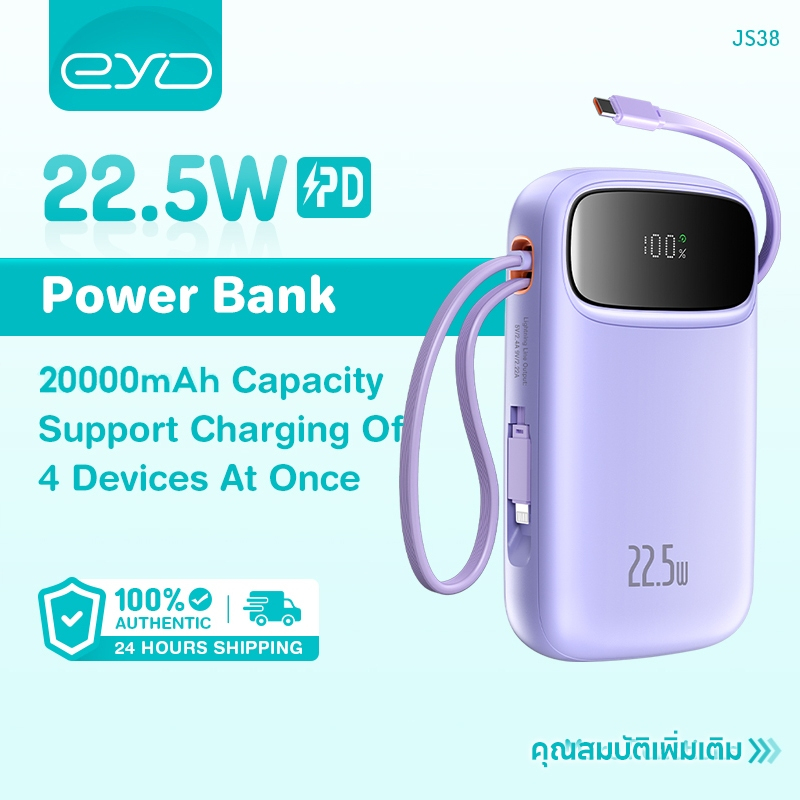 Powerbank 20000mAh/22.5W Fast Charging With Double Cable Original Power Bank Type-C Lightning for iPhone and AndroidEYD