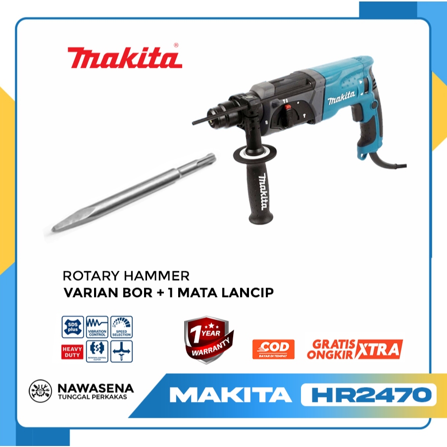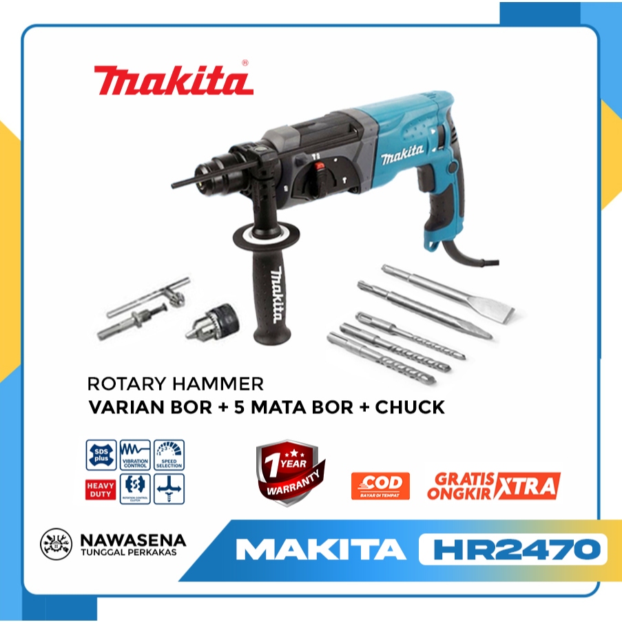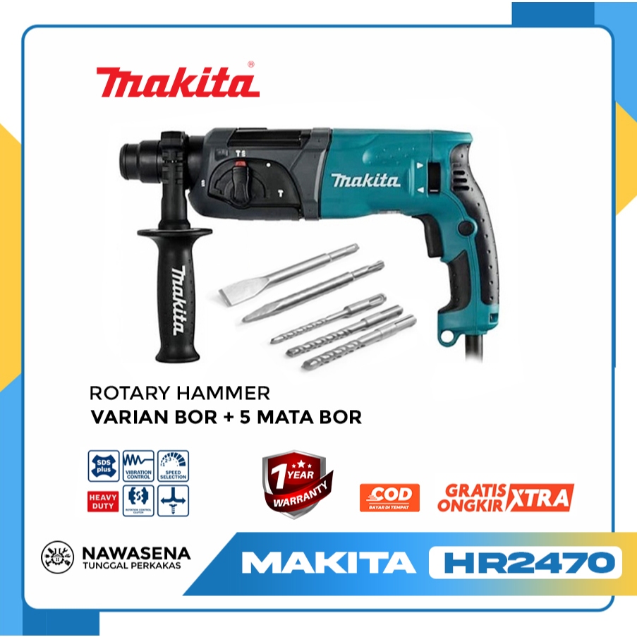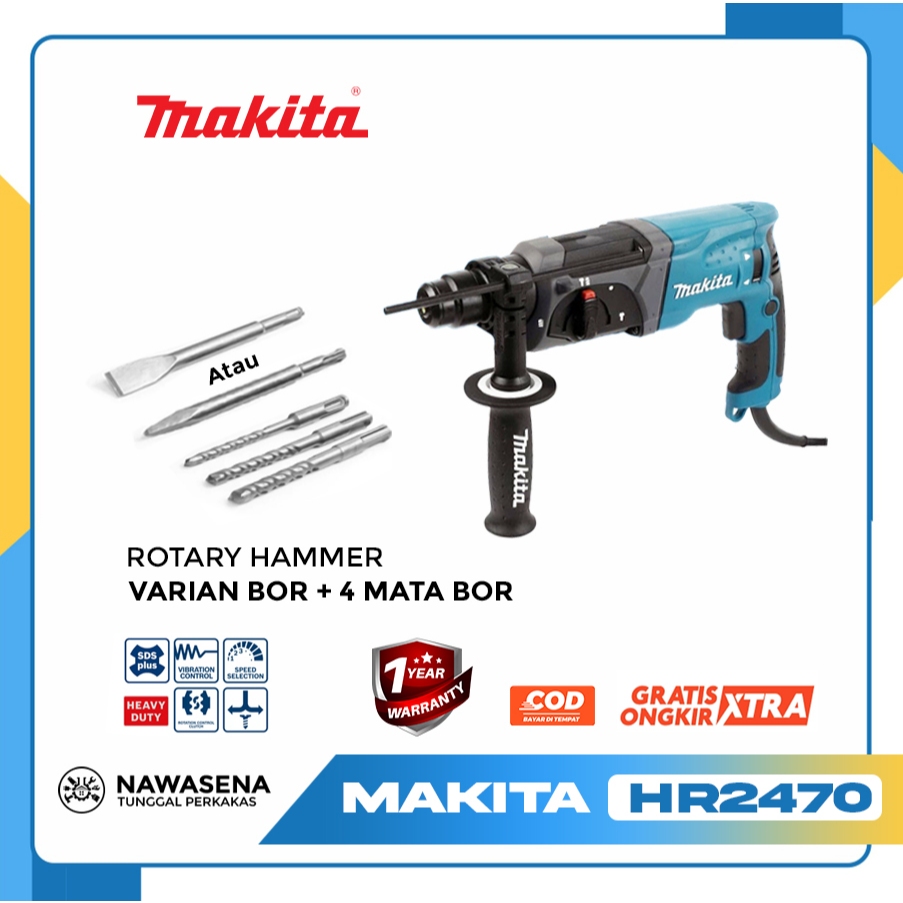 Mesin Bor SDS Makita Rotary Hammer HR2470 + 5 Buah Mat Bor Termurah gratis ongkir