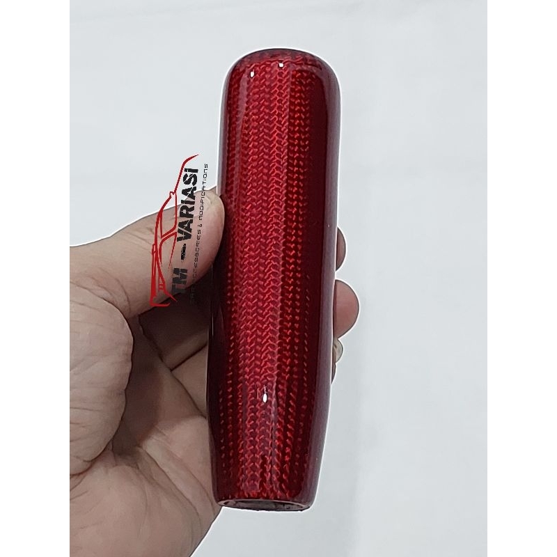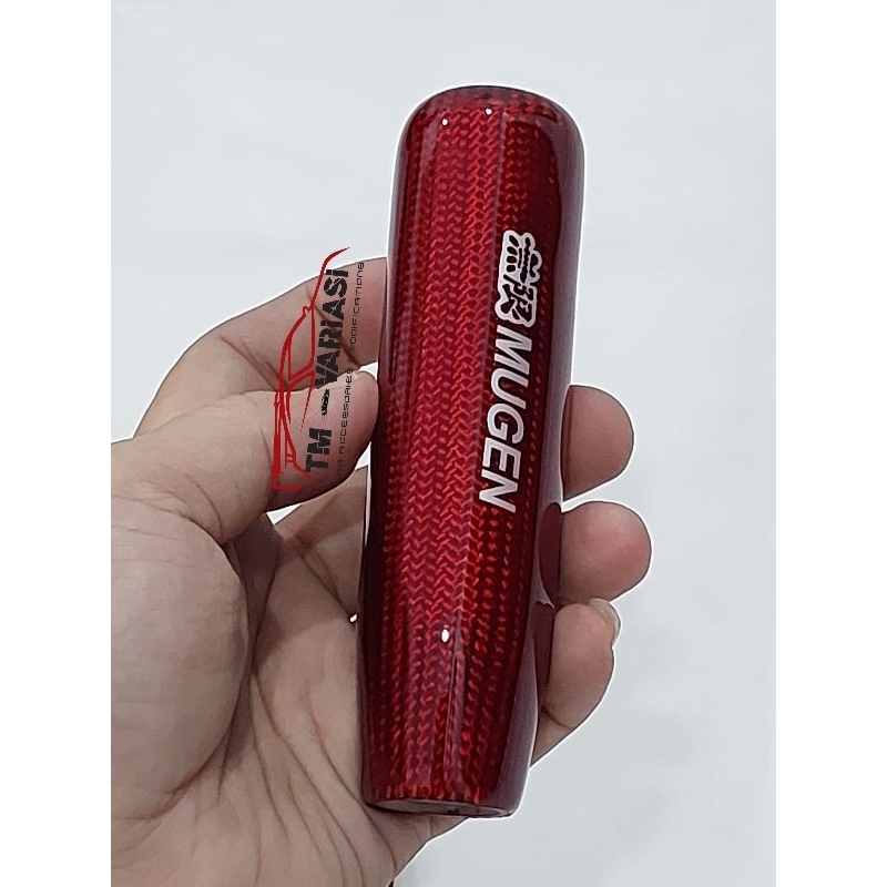 PREMIUM Gear Shift Knob Racing Mugen REAL Carbon Merah Tebal Ulir 13cm