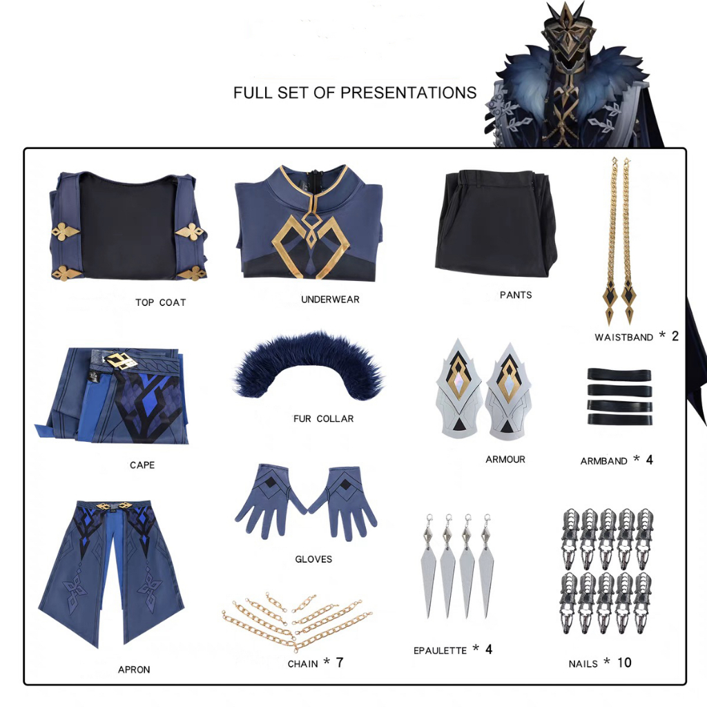 Eleven Fatui Harbingers The Captain Capitano Cospaly Costume Genshin Impact Face Shield Cloak Black