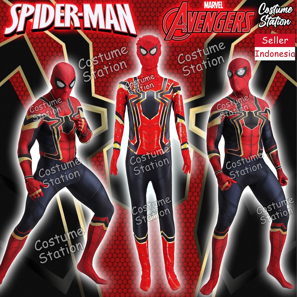 Kostum Spiderman Black Gold Marvel / Costume Avengers Superhero dewasa pria