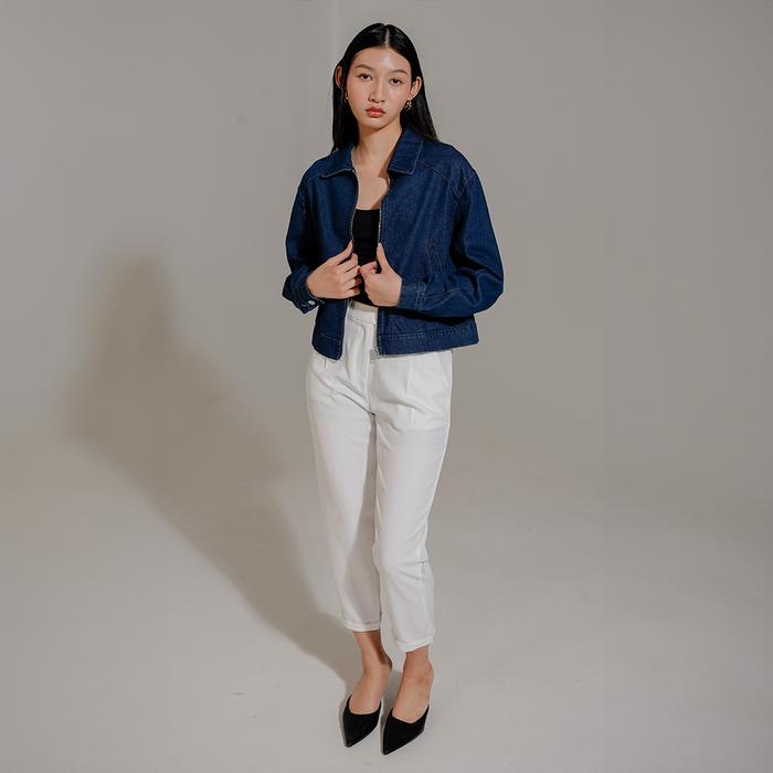 This Is April Jaket Zipper Jeans Wanita Crop Lengan Panjang Hijab Friendly West Outer Dark Denim & Light Denim (Restock)