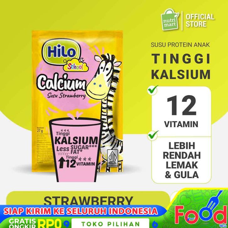 HiLo School Susu Strawberry 10 Sachet - Susu Tinggi Kalsium Lebih Rendah Gula