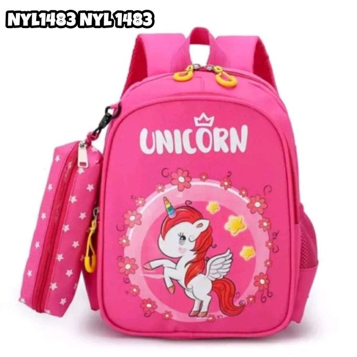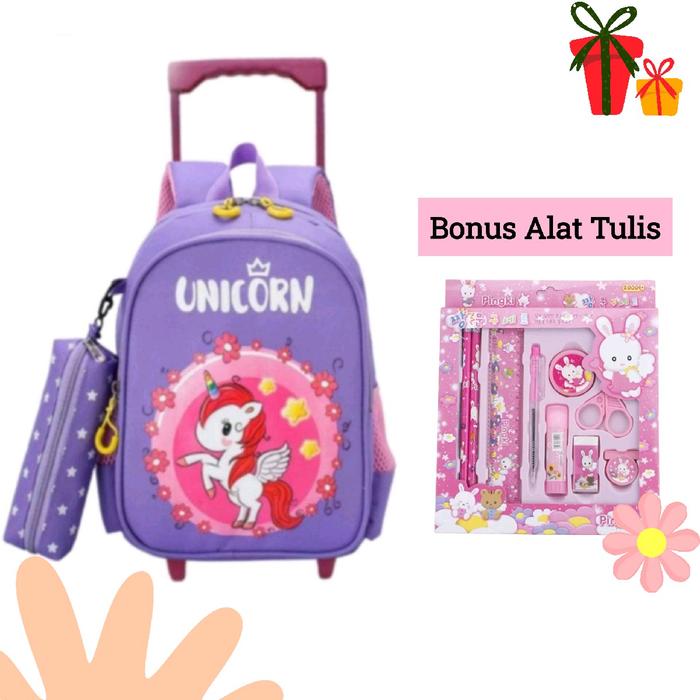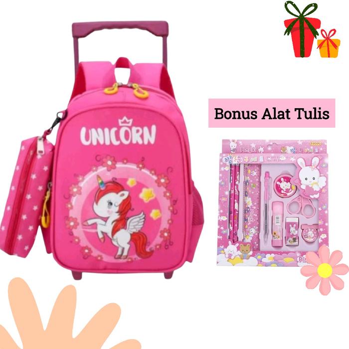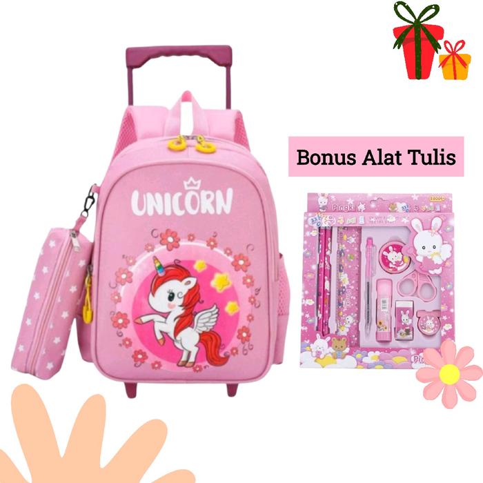 Tas Ransel Troli Anak Perempuan Sekolah Tk Karakter Unicorn Tas Dorong Koper Anak Perempuan Karakter - Pink