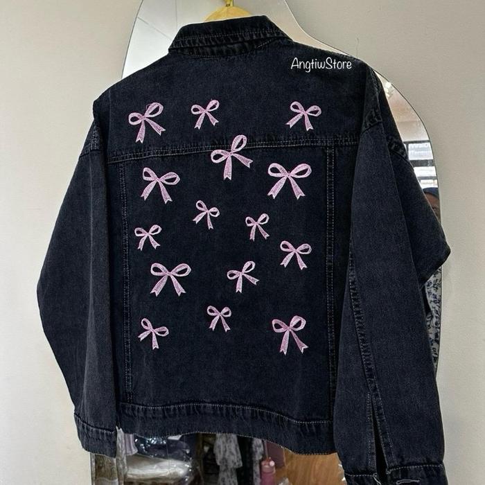 Angtiw - Jaket Jeans Coquette Oversize Snow Black - Pita Pink Snowblack, Ld 120Cm