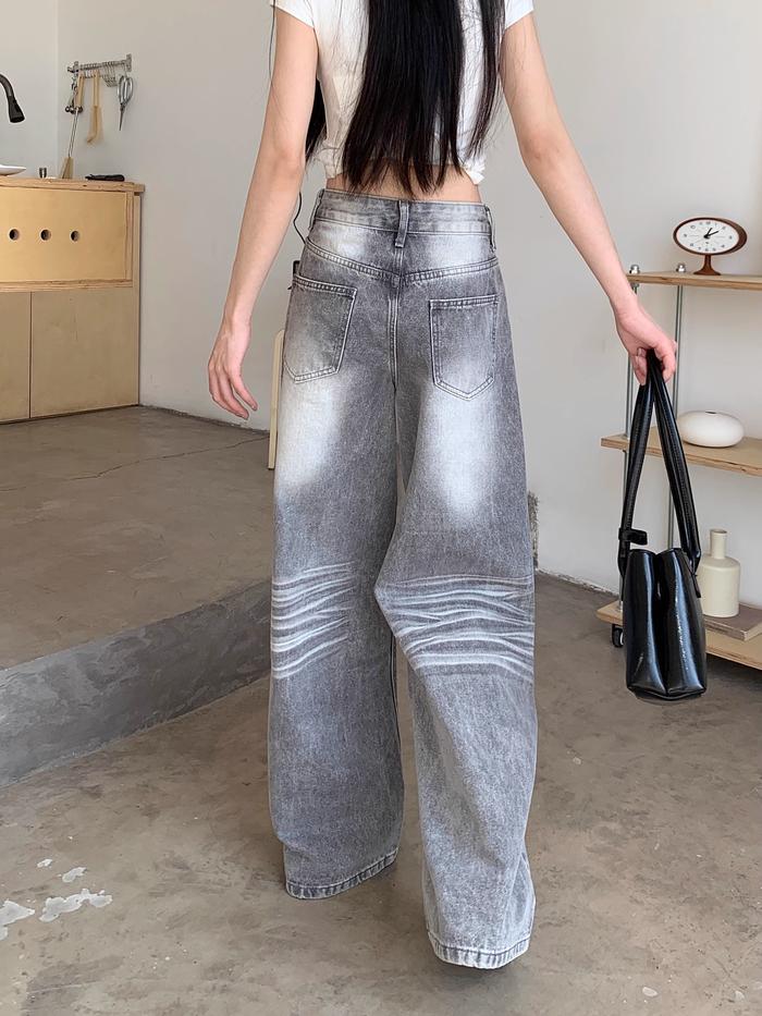 Lulu Abu-Abu Kulot Highwaist Celana Panjang Wanita-Baggy Jeans Wanita--Goresan Halus Dan Jelas - Premium Abu, S