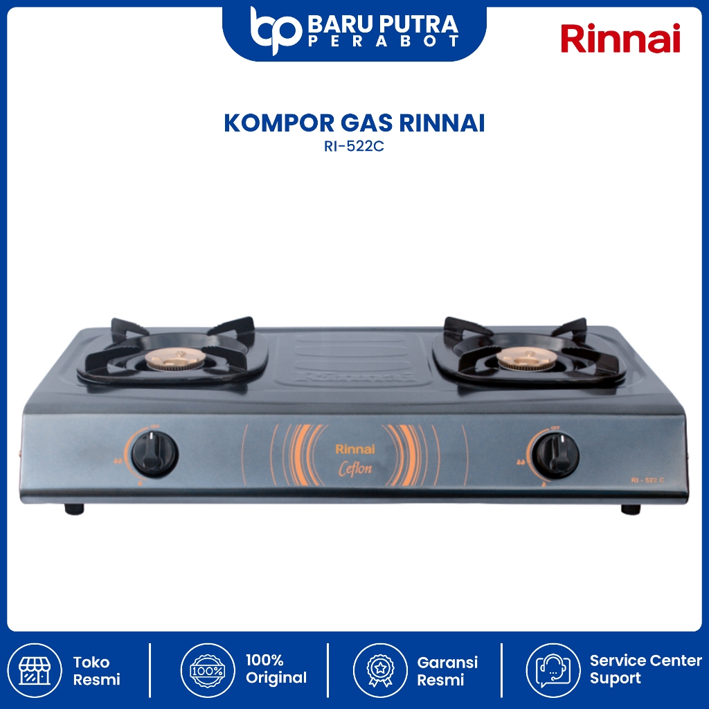 KOMPOR RINNAI RI522C / RI522 / RI-522 TEFLON (EKONOMIS / 2 TUNGKU) 100% ORIGINAL