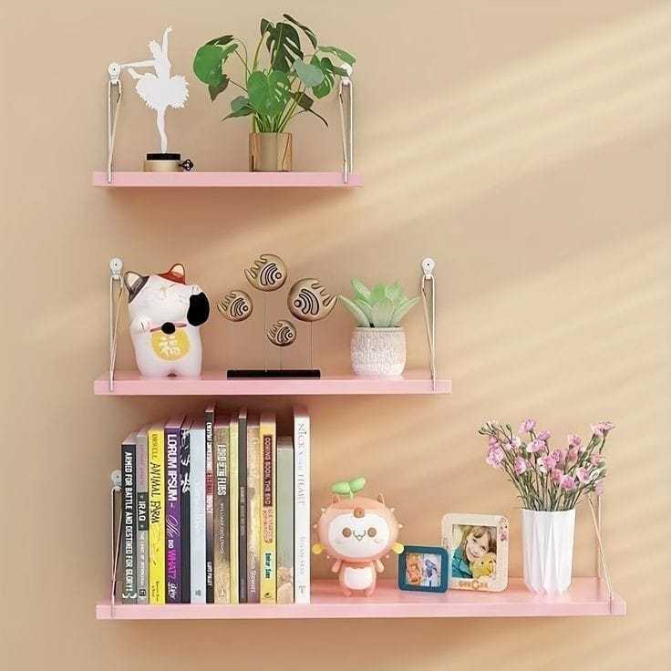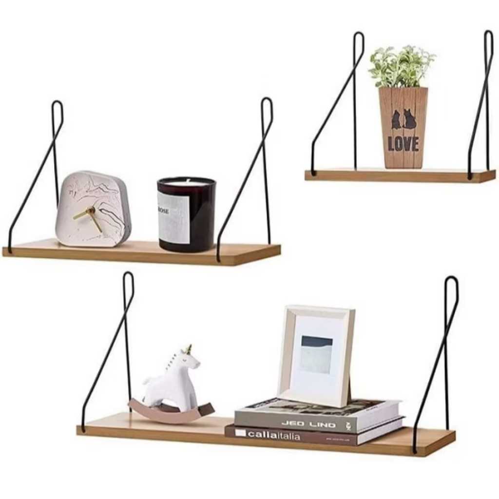 Rak Dinding Tempel Rak Dinding Kayu Minimalis Hiasan Dinding Kamar Rak Dinding Gantung Besi 3 Susun Panjang 40,30,20