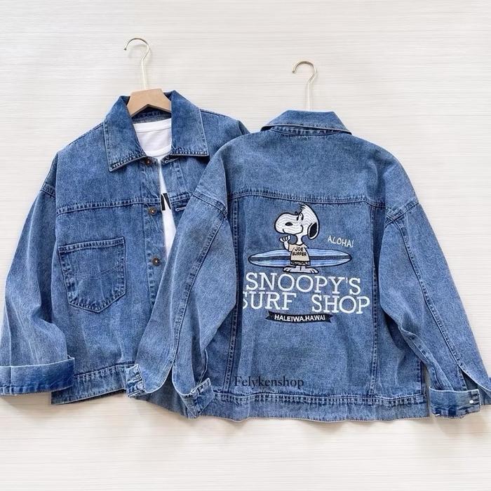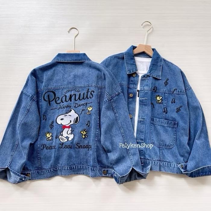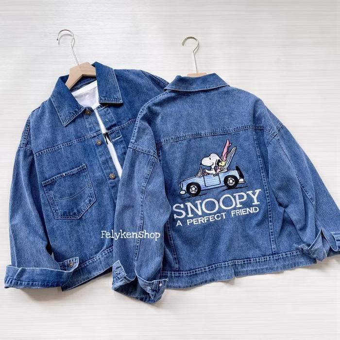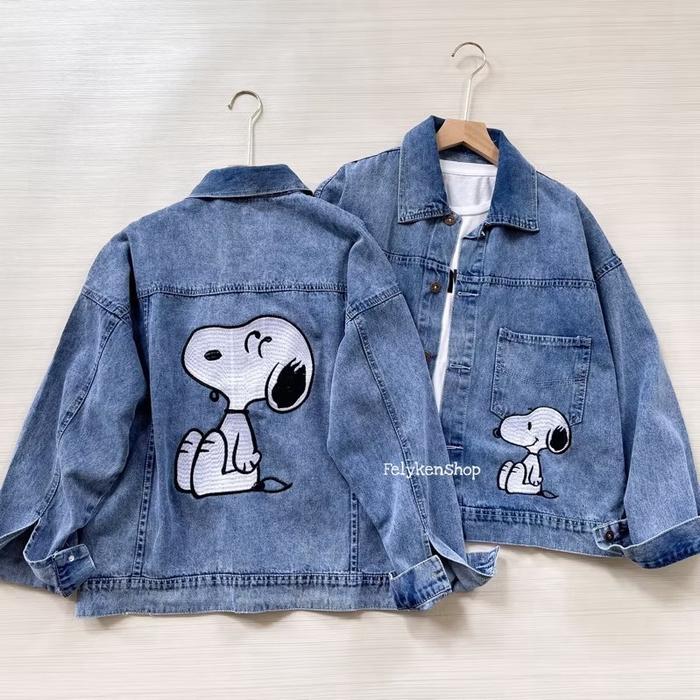 Jaket Jeans Oversize Bordir Kode Mp 069 E / Jaket Denim Wanita / Jaket Jeans Bordir Kekinian - Snoopy