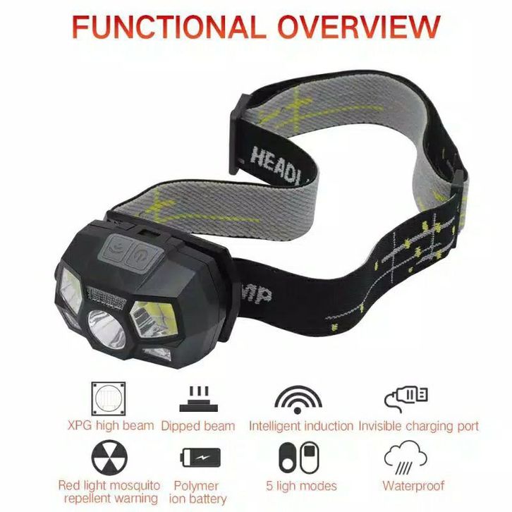 ORIGINAL Headlamp Sensor LED Senter Kepala Camping Stronglight Induction Rechargeable USB Motion Sensor X ebobr