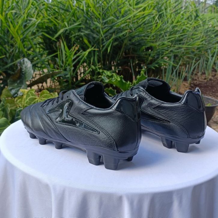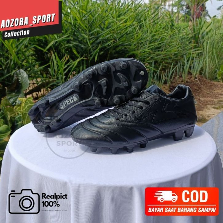 sepatu bola specs bahan kulit asli warna fullblack free kaos kaki