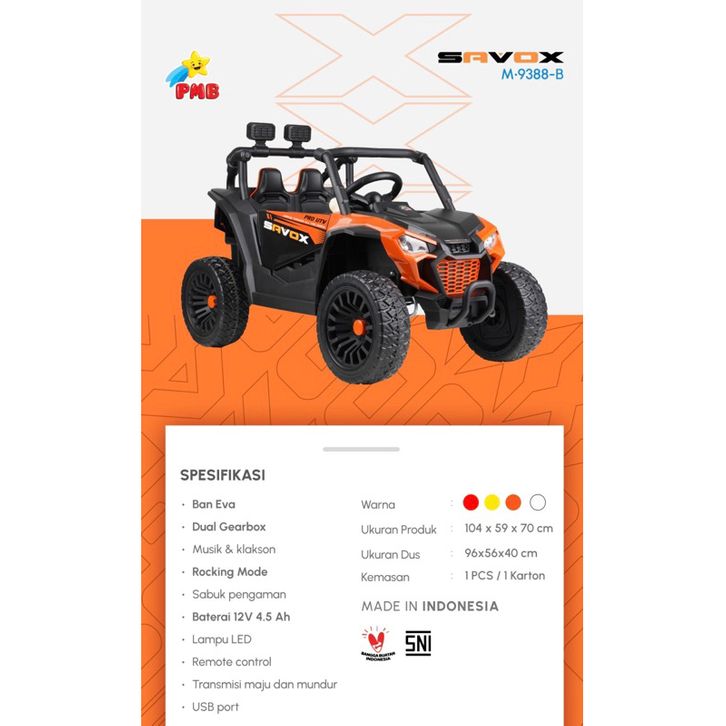 Mobil Aki Anak PMB M-9388 M9388 MIGHTY 1000S Kendaraan Mainan Remote Manual Gas Cas
